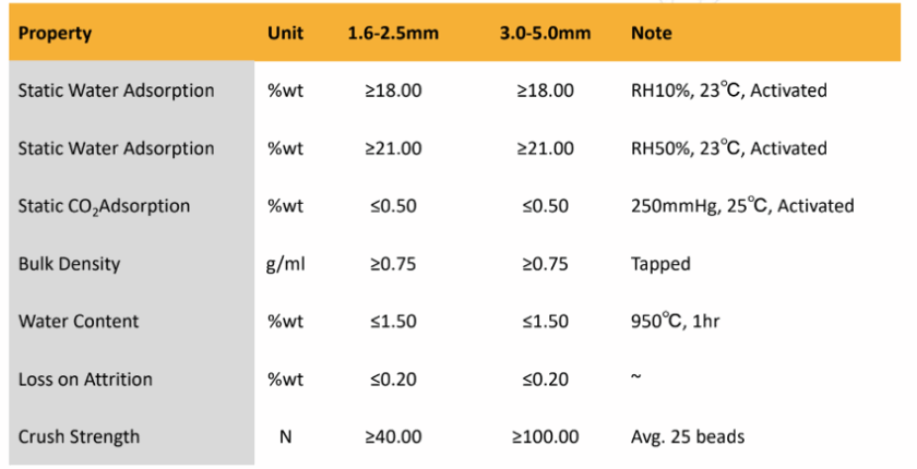 Esse produto possui durabilidade superior, tem melhor cinética de adsorção de H₂O e a co-adsorção de etanol é insignificante. É ideal para plantas PSA de desidratação e para um produto com 99,8% de pureza.